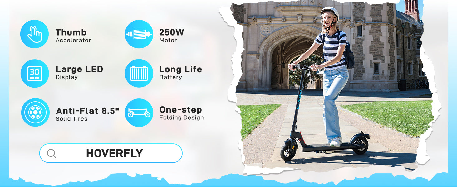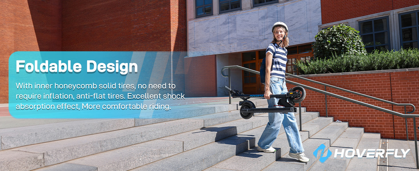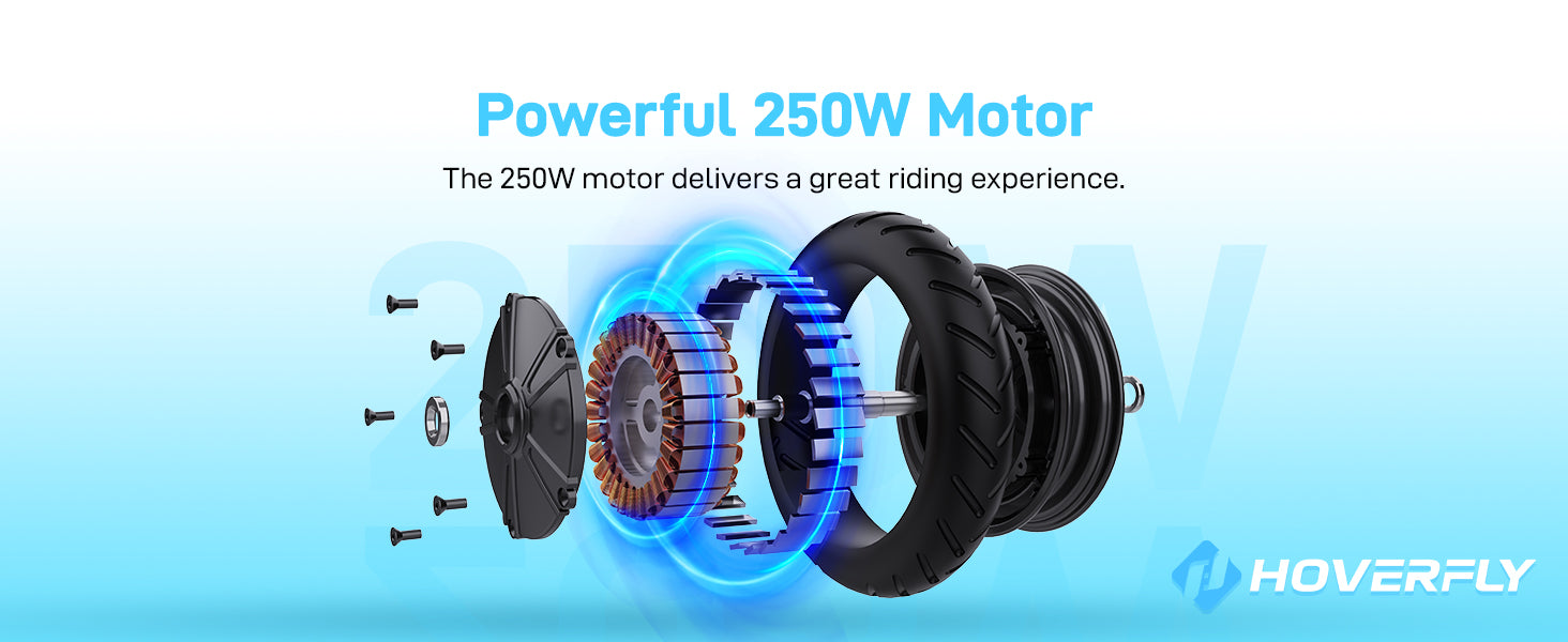 Perfect for navigating city streets, it features a 48V 250W rear motor with Hall sensor and 8.5” honeycomb tires for a smooth ride.