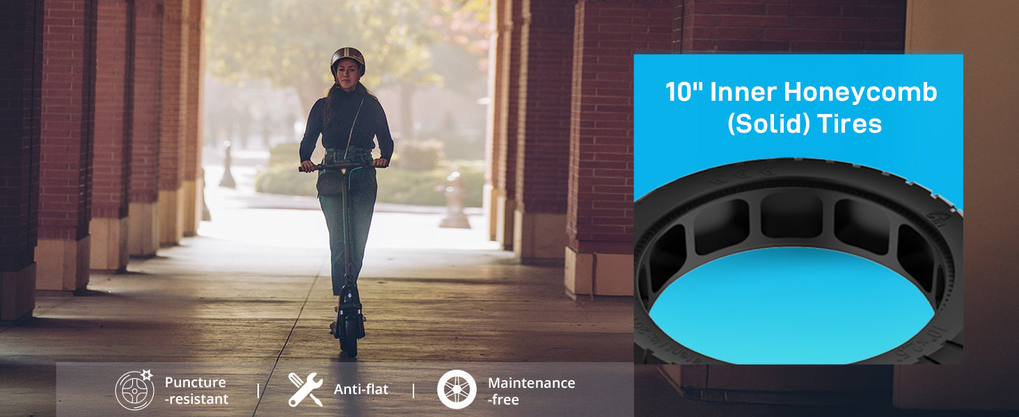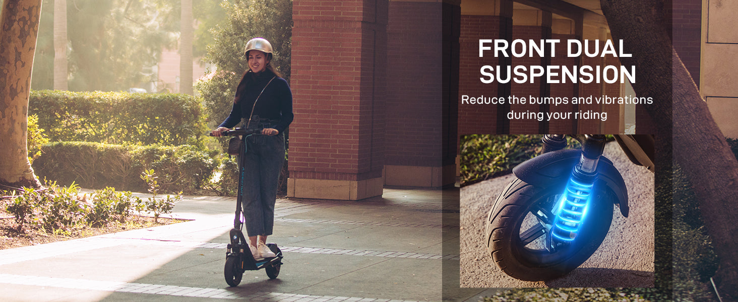 10" Solid Tire, Max 18 Mile Range and 20Mph Speed, 500W Motor, with Front Dual Suspension Electric Code Lock, Portable Foldable Commuting Escooter.