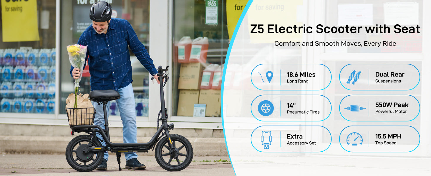 Tired of standing up to ride? You can ride Z5 escooter with seat.