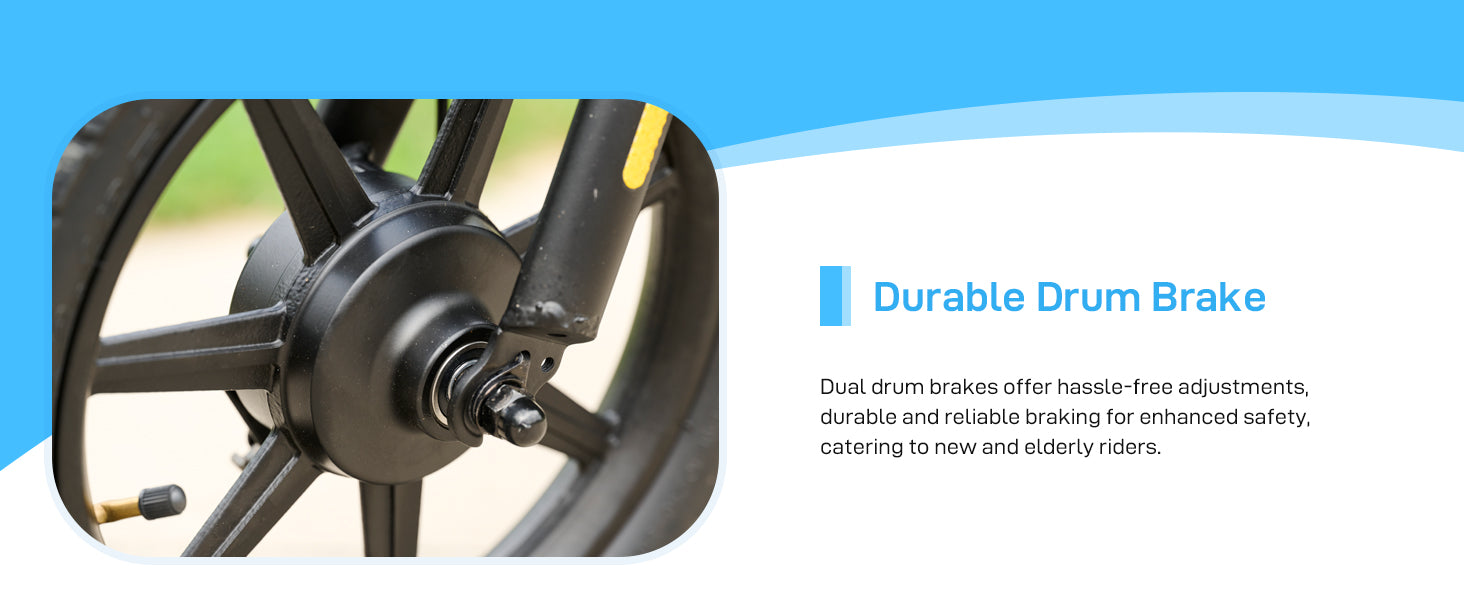 ✅ Dual drum brakes✅ Wider foot space✅ Design in the USA