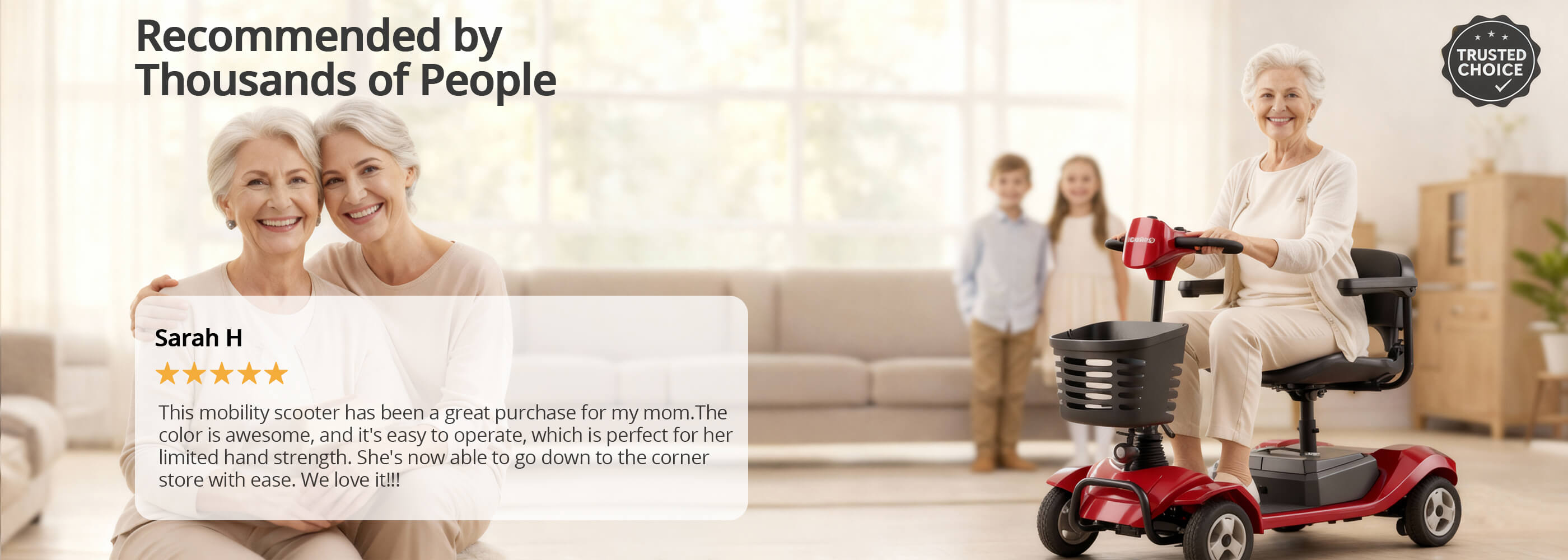 My mobility scooter has been a total game-changer. It’s comfortable, easy to maneuver, and surprisingly quick. The battery lasts longer than expected, and the smooth ride makes getting around so much easier. Definitely worth it for anyone needing reliable mobility support.